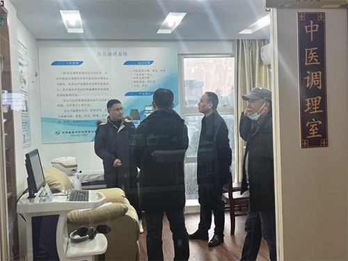 隨后章主任一行來(lái)到我司中醫(yī)調(diào)理室,并饒有興致的聽(tīng)取工作人員介紹中醫(yī)調(diào)理室的成立背景、各模塊組成及工作原理、項(xiàng)目實(shí)施及落地情況,在工作人員演示完中醫(yī)音樂(lè)調(diào)理系統(tǒng)之后,對(duì)公司將中醫(yī)理論與人工智能融合表示高度贊賞,并鼓勵(lì)企業(yè)加大宣傳推廣力度。